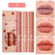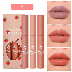 3 Colors Strawberry Matte Lipstick - Long Lasting Velvet Finish