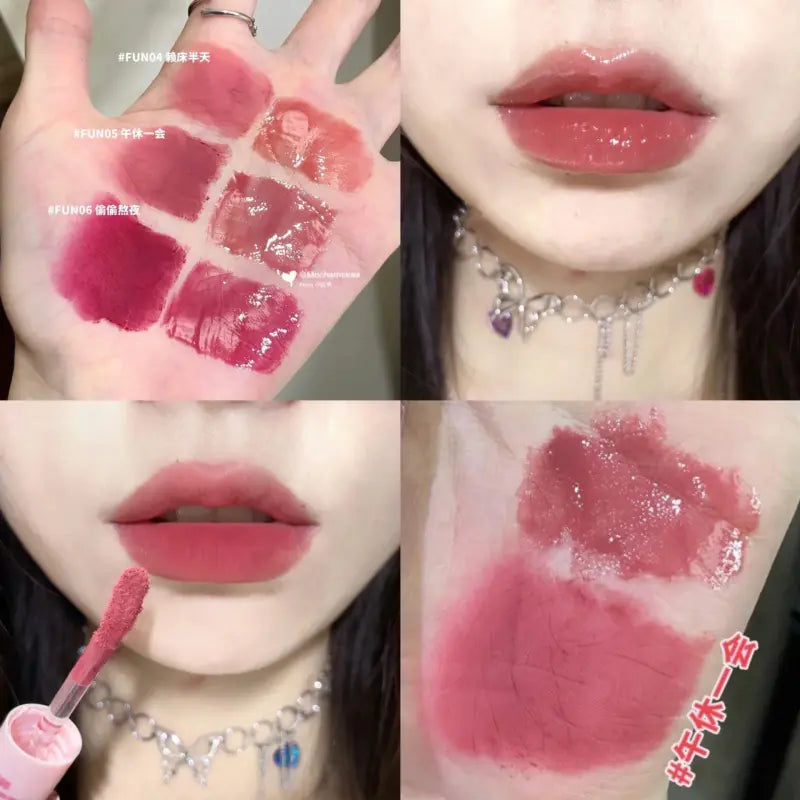 Introducing the perfect addition to your summer makeup collection: our Fun Double-Ended Lip Glaze. This innovative product features two distinct textures in one convenient package, allowing you to effortlessly switch between a stunning matte finish and a radiant mirror-like gloss at any moment, no matter where you are.