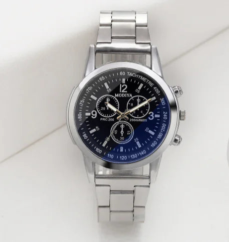 Elevate your style with our stunning Blue Light Glass Three-Eye Men's Steel Band Watch. This exquisite timepiece is not just a watch; it’s a statement. Crafted for those who appreciate elegance and functionality, this watch features a quartz movement for precise timekeeping and a sleek design that effortlessly complements any outfit.